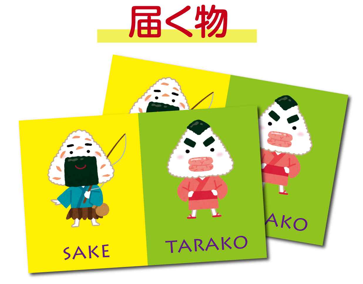 欲しい物はたらこおにぎりさんと、鮭おにぎりさんの2デザイン、1枚ずつです。