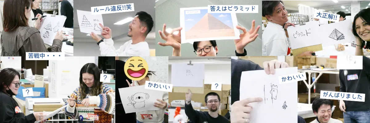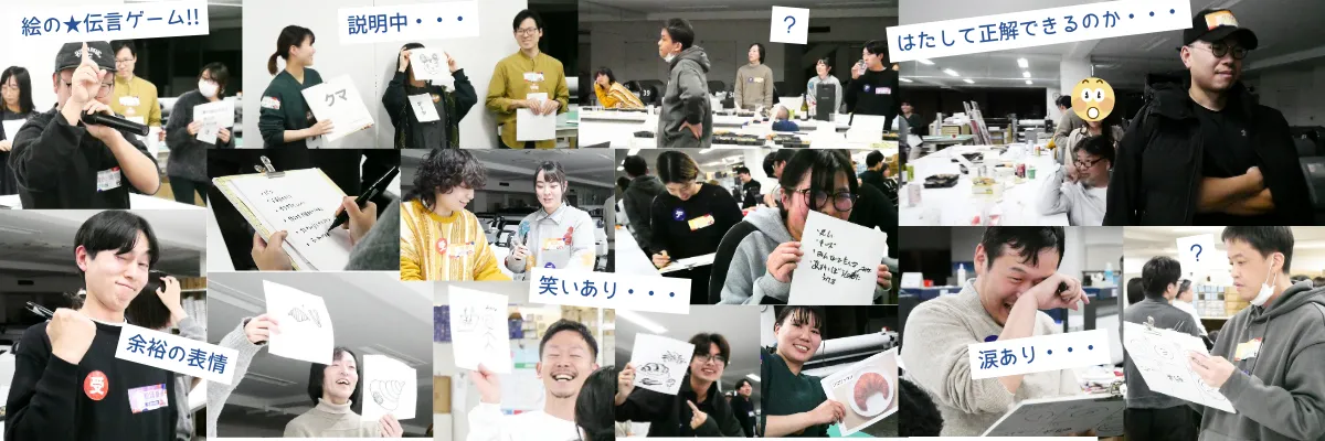 ペリ子さん考案の「絵の伝言ゲーム」は、プリオの仕事工程を再現した内容。