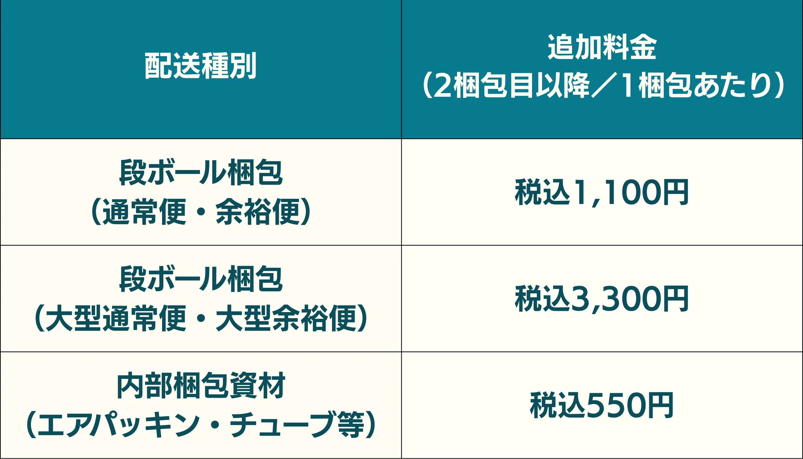 そのため、複数の配送先への出荷や商品を分けて梱包したい場合は、専用のオプションを追加していただく形となります。