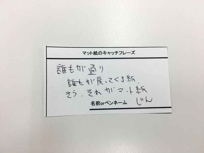 誰もが通り、誰もが戻ってくる紙。そう、それがマット紙。 /P.N. じん